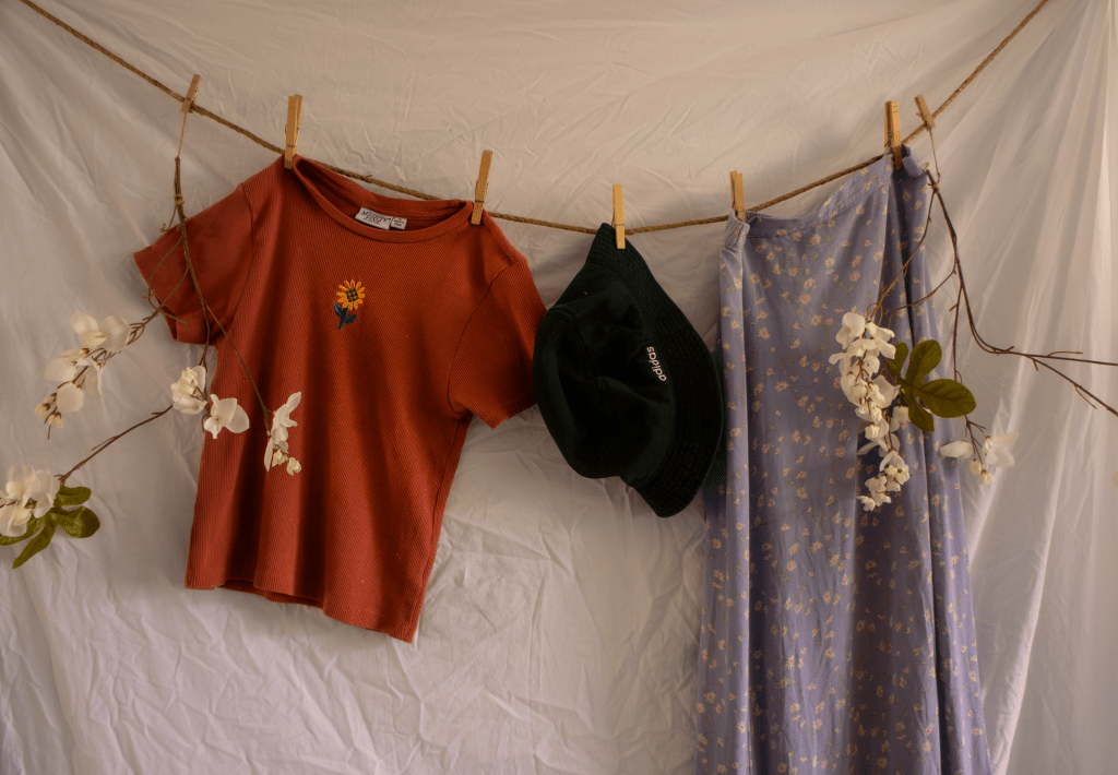 Through the use of space, the clothesline allows for fluidity and height in the shoot.